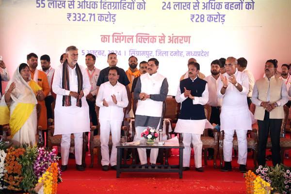 मुख्यमंत्री डॉ. यादव शनिवार को दमोह जिले के ग्राम सिंग्रामपुर में महिला सम्मेलन को संबोधित कर रहे थे। सम्मेलन में उप मुख्यमंत्री श्री जगदीश देवड़ा, श्री राजेन्द्र शुक्ल सहित मंत्रि-परिषद के सभी सदस्य मौजूद रहे। मुख्यमंत्री डॉ. यादव ने कहा कि प्रधानमंत्री श्री नरेन्द्र मोदी के नेतृत्व में नारी सम्मान सर्वोपरि है। सभी वर्ग की महिलाओं के लिये अनेक हितग्राही और स्व-रोजगार मूलक योजनाएँ प्रभावी रूप से संचालित की जा रही हैं। मुख्यमंत्री ने कहा कि वर्ष 2024-25 में लाड़ली बहना योजना में 18 हजार 984 करोड़ रुपये का प्रावधान रखा गया है। मुझे यह जानकर खुशी हुई कि सिर्फ दमोह जिले में ही ढाई लाख लाड़ली बहनों को योजना का लाभ मिल रहा है। प्रधानमंत्री श्री मोदी ने बहनों को लखपति बनाने की योजना लागू की है। प्रधानमंत्री ने ‘एक देश-एक चुनाव’ की घोषणा की है। अब लोकसभा और विधानसभा चुनाव में भी महिलाओं को 33 प्रतिशत आरक्षण मिलेगा। इस व्यवस्था से बहनों के महत्व का एहसास होगा। हमारी बहनें सत्ता के साथ सुव्यवस्था और विकास लायेंगी। मुख्यमंत्री डॉ. यादव ने कहा कि नारी सशक्तिकरण के लिये आज से नवरात्रि तक विभिन्न गतिविधियाँ संचालित की जायेंगी, जिसमें मॉर्शल ऑर्ट, सायबर टेक्नोलॉजी का प्रशिक्षण भी शामिल है। इन गतिविधियों से नारी को आत्म-निर्भर और जागरूक बनाया जायेगा।