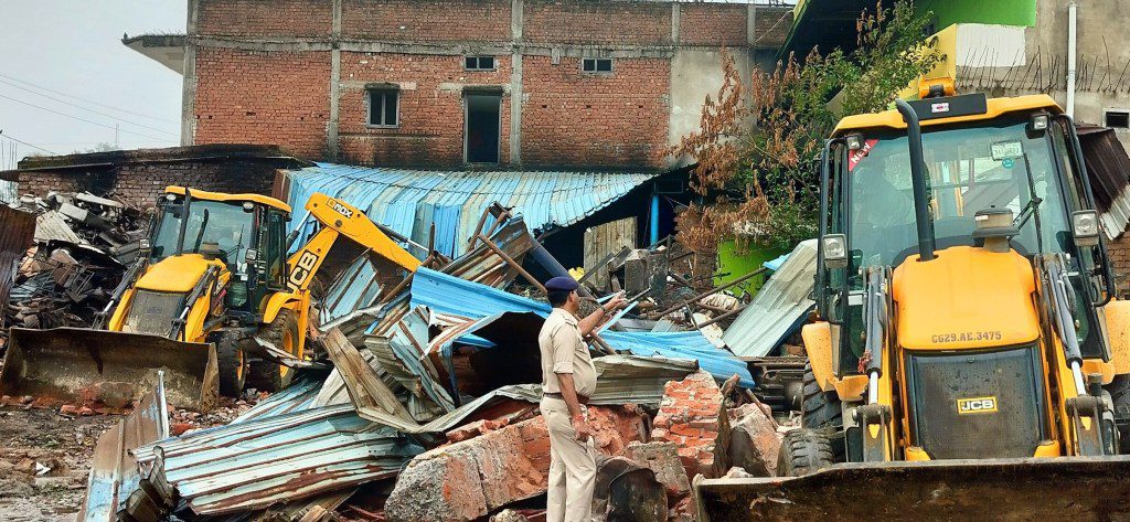 सूरजपुर। छत्तीसगढ़ के सूरजपुर जिले में प्रधान आरक्षक तालिब शेख की पत्नी मेहनाज शेख और बेटी आलिया शेख की जघन्य हत्या के मुख्य आरोपी कबाड़ी कुलदीप साहू और उसके परिवारजनों के आधा दर्जन से अधिक अवैध मकानों, प्रतिष्ठानों पर आज सोमवार को अलसुबह पुलिस और जिला प्रशासन की संयुक्त टीम ने बुलडोजर चलाने की कार्रवाई शुरू की। बड़ी संख्या में जवानों की मौजूदगी के साथ संबंधित इलाका छावनी में तब्दील हो गया है। आज सुबह जब लोग सोकर उठे तो कार्रवाई का पता चला।