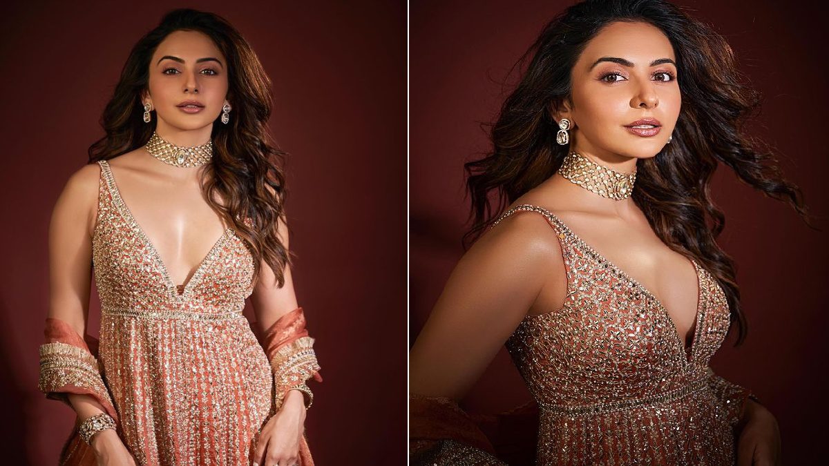 इन फोटोज में आप देख सकते हैं रकुल प्रीत सिंह ने पीच कलर का अनारकली सूट पहना हुआ है, जिसमें वो बेहद ही खूबसूरत नजर आ रही हैं।