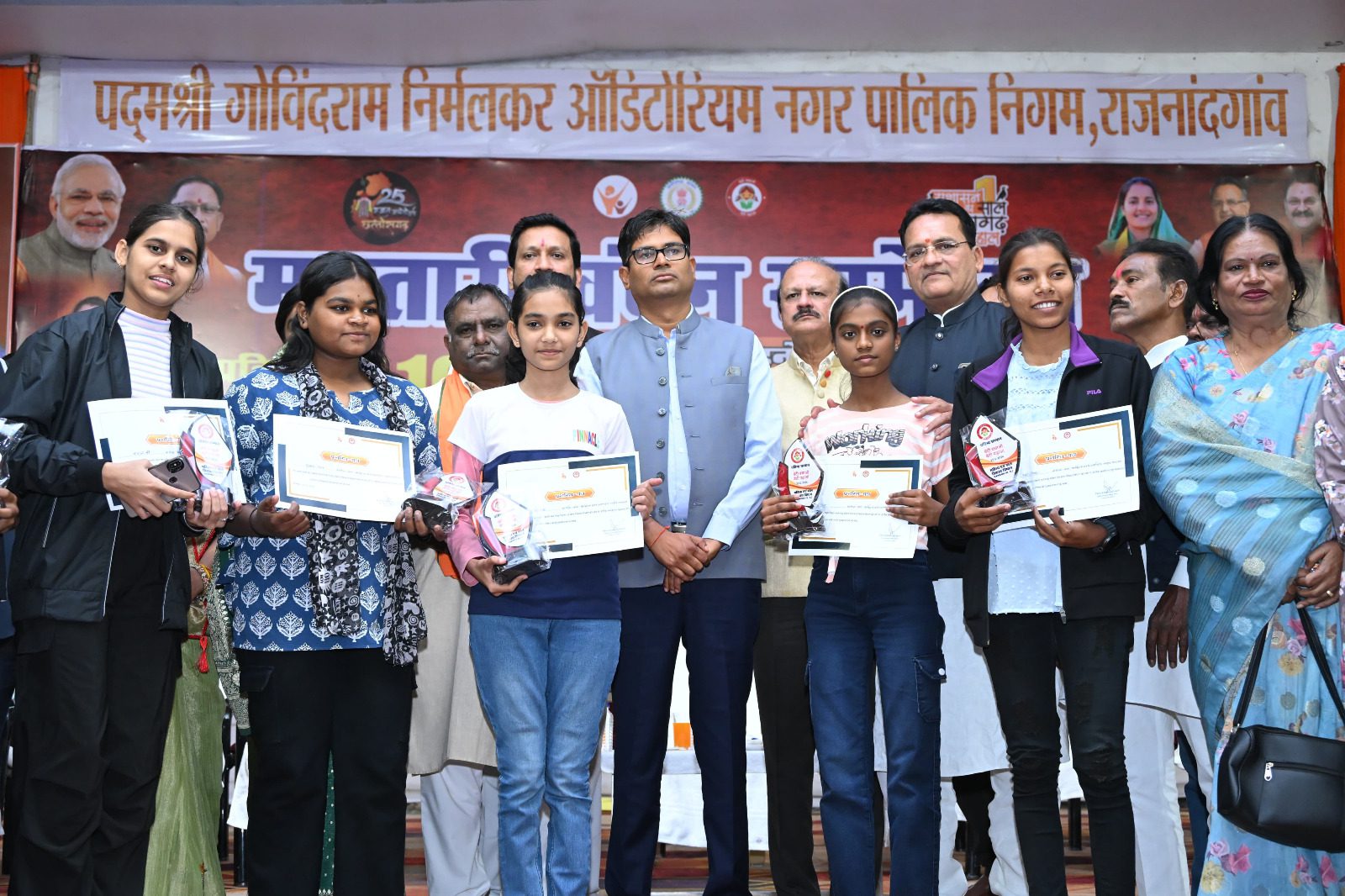 रायपुर। राज्य शासन के एक वर्ष पूर्ण होने पर जनादेश परब के अवसर पर आज महतारी वंदन सम्मेलन राजनांदगांव के पद्मश्री गोंविद राम निर्मलकर ऑडिटोरियम में आयोजित किया गया। कार्यक्रम में मुख्य अतिथि के रूप में वित्त मंत्री श्री ओ. पी. चौधरी शामिल हुए। वित्त मंत्री श्री चौधरी ने महतारी वंदन योजना के लाभार्थियों को शॉल और श्रीफल देकर सम्मान किया। उन्होंने बेटी बचाओ बेटी पढ़ाओ के तहत खेल, शिक्षा, कला के क्षेत्र में राज्य एवं राष्ट्रीय स्तर पर उत्कृष्ट प्रदर्शन करने वाली बालिकाओं को प्रतीक चिन्ह और प्रमाण पत्र देकर सम्मानित किया। कार्यक्रम में छत्तीसगढ़ महिला कोष के तहत 4 महिला स्वसहायता समूहों को आर्थिक गतिविधियां संचालित करने के लिए चेक का वितरण किया गया। सुकन्या समृद्धि योजना के अंतर्गत हितग्राहियों को पास बुक का वितरण किया गया।