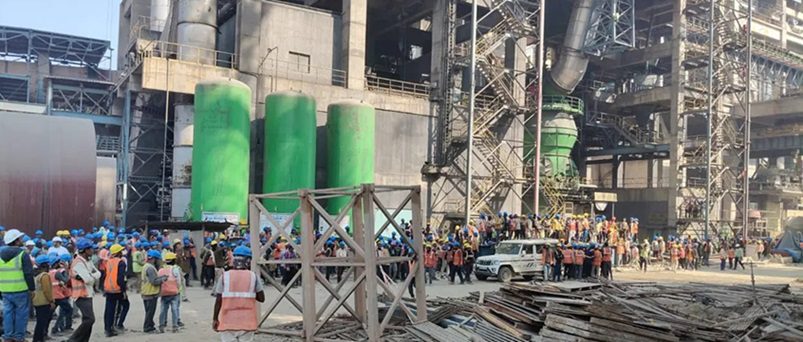 पन्ना । मध्यप्रदेश के पन्ना में स्थित जेके सीमेंट प्लांट में गुरुवार सुबह बड़ा हादसा हो गया। प्लांट में निर्माणाधीन हिस्से में छत की स्लैब डाली जा रही थी, जहां सैकड़ों मजदूर काम कर रहे थे। इसी दौरान अचानक भाड़ा (स्कैफोल्डिंग) गिर गया, जिसकी चपेट में आने से 5 मजदूरों की मौत हो गई, जबकि करीब 50 मजदूर घायल हुए हैं।