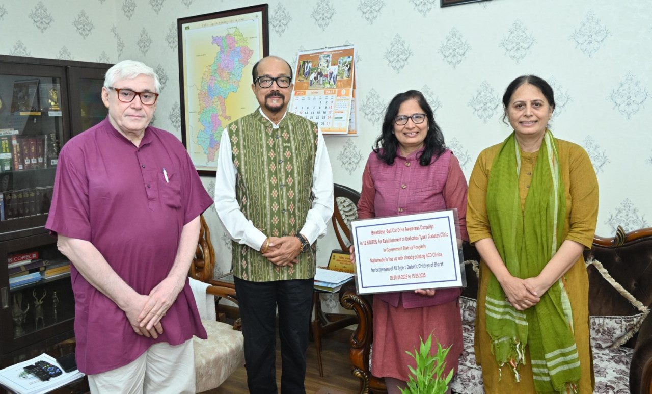 रायपुर :राज्यपाल श्री रमेन डेका ने आज किशोर मधुमेह यानी टाइप-1 डायबिटीज के प्रति किशोरो में जागरूकता फैलाने निकली गुजरात की दो बहनेंकृडॉ. स्मिता जोशी और डॉ. शुक्लाबेन रावल की सेल्फ कार ड्राइव जनजागरूकता यात्रा को राजभवन परिसर से हरी झंडी दिखाकर आगे रवाना किया। श्री डेका ने इस सामाजिक पहल की सराहना की और दोनों चिकित्सकों को शुभकामनाएं दीं।