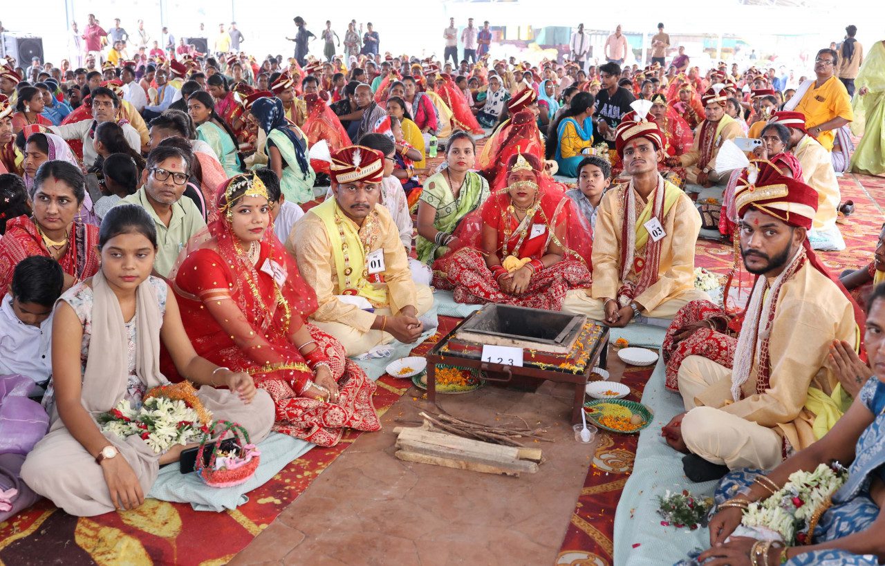 रायपुर महिला एवं बाल विकास विभाग द्वारा रायगढ़ के पटेलपाली स्थित कृषि उपज मंडी परिसर में मुख्यमंत्री सामूहिक कन्या विवाह योजना अंतर्गत भव्य सामूहिक विवाह समारोह का आयोजन किया गया। इस अवसर पर कुल 58 जोड़े परिणय सूत्र में बंधे। कार्यक्रम में मुख्य अतिथि के रूप में प्रदेश के वित्त मंत्री ओ.पी. चौधरी वर्चुअल माध्यम से शामिल हुए। वित्त मंत्री श्री चौधरी ने नवविवाहित जोड़ों को उनके नए जीवन के लिए शुभकामनाएं दीं एवं प्रत्येक जोड़े को 5-5 हजार रुपए की आर्थिक सहायता देने की घोषणा की। उन्होंने कार्यक्रम में सहयोग देने के लिए गायत्री परिवार शाखा रायगढ़ का भी आभार व्यक्त किया