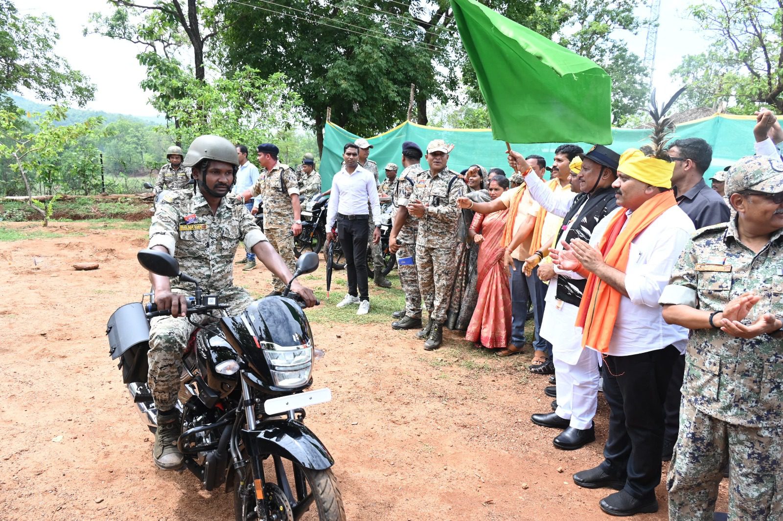 मुख्यमंत्री ने जवानों की हौसला अफ़ज़ाई करते हुए तिलक लगाकर उनका अभिनंदन किया। उन्होंने जवानों से कहा कि बस्तर में अमन और शांति लाने में आपकी महत्वपूर्ण भूमिका है। मुख्यमंत्री ने सुरक्षा बल के जवानों को 50 मोटर बाइक पर हरी झंडी दिखाकर गस्त करने के लिए रवाना किया।