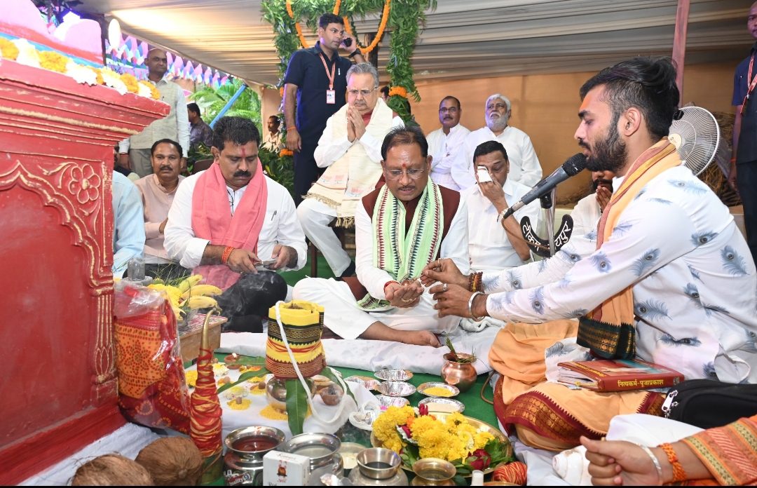 पहली बार मुख्यमंत्री निवास में हरेली के पूजन में भिलाई की ग्रेजुएट सुश्री धनिष्ठा शर्मा ने अपने बड़े भाई श्री दिव्य शर्मा के साथ भगवान शिव के अभिषेक में मंत्रोच्चार किया, इससे मुख्यमंत्री श्री साय एवं उनके परिजनों सहित मौजूद सभी अतिथि प्रभावित हुए।