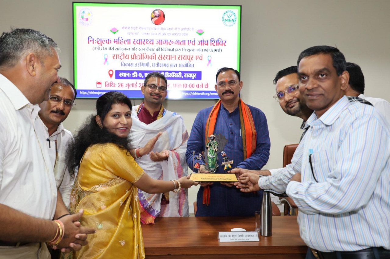 रायपुर राष्ट्रीय प्रौद्योगिकी संस्थान (एनआईटी) रायपुर एवं विकास तरंगिणी, छत्तीसगढ़ के संयुक्त तत्वावधान में आज महिलाओं के लिए नि:शुल्क स्वास्थ्य जागरूकता एवं जाँच शिविर का एनआईटी परिसर में आयोजन किया गया। यह जांच शिविर और जागरूकता कार्यक्रम विशेषतः सर्वाइकल और ब्रेस्ट कैंसर जैसी गंभीर बीमारियों के लिए आयोजित किया गया। शिविर के माध्यम से महिलाओं को नि:शुल्क जाँच, परामर्श और आवश्यक दवाइयाँ उपलब्ध कराई गईं। इस अवसर पर राज्य के स्वास्थ्य मंत्री श्री श्याम बिहारी जायसवाल शिविर में शामिल हुए और महिलाओं को बेहतर स्वास्थ्य सुविधाएं देने की सरकार की प्रतिबद्धता को दोहराया।