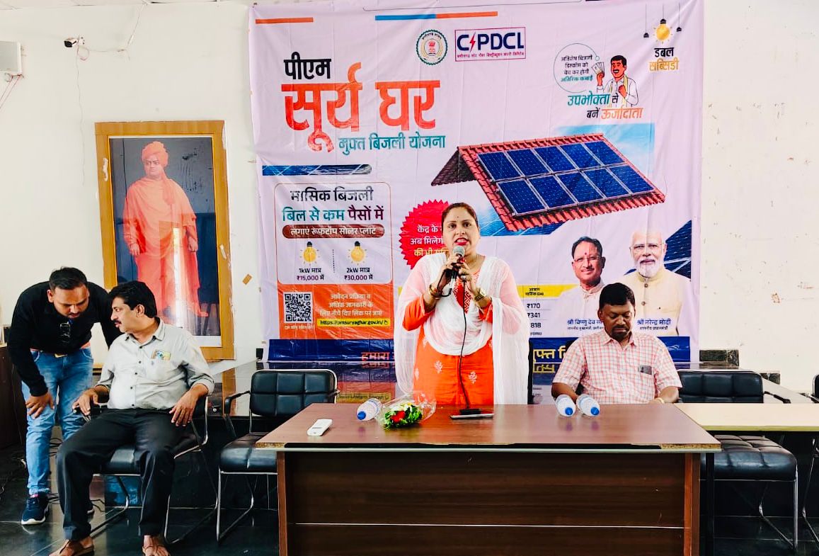 शिविर में मुख्य अतिथि के रूप में छत्तीसगढ़ राज्य महिला आयोग की सदस्य सुश्री दीपिका सोरी उपस्थित थी। उन्होंने उपस्थित नागरिकों को संबोधित करते हुए कहा कि सूर्यभारती मुफ्त बिजली योजना शासन की महत्वपूर्ण योजना है जिसका लाभ लेकर आप मुफ्त में बिजली प्राप्त कर सकते हैं। इसका मुख्य उद्देश्य घरेलू प्रयोजन वाले समस्त कनेक्शन धारकों का बिजली बिल शून्य करना है। इसमें शासन के द्वारा इकाई स्थापित करने पर अनुदान राशि भी दी जाती है। इसके साथ ही यह योजना 10 वर्षों के लिए न्यूनतम ईएमआई में भी उपलब्ध है। योजना का लाभ लेने हेतु पीएम सूर्यघर वेब पोर्टल पर ऑनलाइन आवेदन किया जा सकता है। आप सभी अधिक से अधिक संख्या में योजना का लाभ उठावें। कार्यक्रम में विद्युत विभाग के जिला अधिकारी श्री जे केरकेट्टा, जिला खेल अधिकारी श्री विरूपाक्ष पौराणिक तथा अन्य जनप्रतिनिधि और ग्रामीण उपस्थित थे।