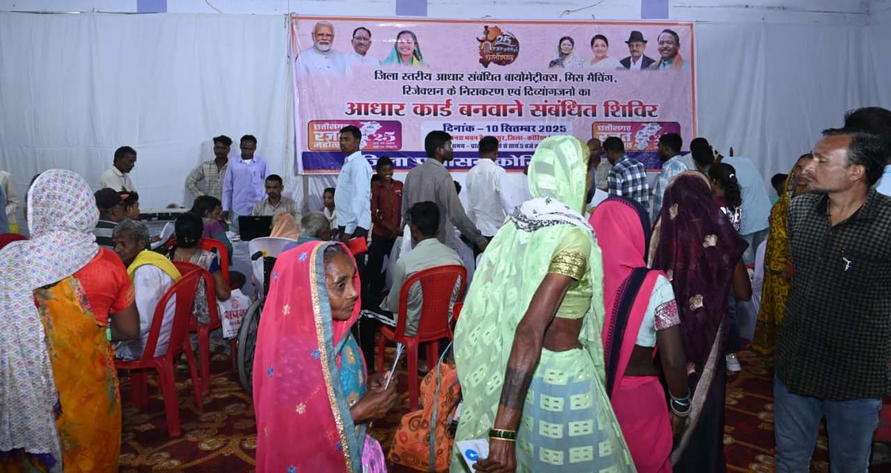 कोरिया  छत्तीसगढ़ रजत जयंती महोत्सव एवं आदि कर्मयोगी अभियान के तहत जिला प्रशासन एवं समाज कल्याण विभाग के संयुक्त तत्वावधान में आज जिला मुख्यालय पर मानस भवन में जिला स्तरीय आधार कार्ड समस्या निवारण शिविर का आयोजन किया गया।