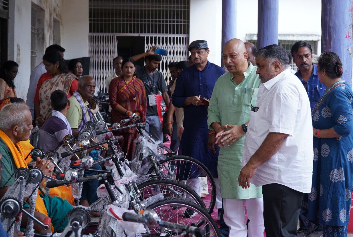 रायपुर सेवा पखवाड़ा के तहत दिव्यांगजनों को शासन की विभिन्न कल्याणकारी योजनाओं का लाभ दिलाने के लिए समाज कल्याण विभाग द्वारा अम्बिकापुर के राजमोहिनी देवी भवन में जिला स्तरीय दिव्यांगजन शिविर का आयोजन किया गया। शिविर में छत्तीसगढ़ शासन के पर्यटन एवं संस्कृति मंत्री श्री राजेश अग्रवाल ने दिव्यांगजनों से मुलाकात कर उन्हें विभिन्न उपयोगी उपकरण ट्रायसायकल, व्हीलचेयर, श्रवण यंत्र एवं सेंसर छड़ी वितरित की । इस दौरान उन्होंने दिव्यांगजनों से उनका कुशलक्षेम जाना तथा योजनाओं का लाभ लेने प्रोत्साहित किया। उन्होंने दिव्यांगजनों से संवाद कर उनकी आवश्यकताओं के बारे में पूछा तथा निराकरण के लिए संबंधित विभाग के अधिकारियों को निर्देशित किया। शिविर के दौरान 13 ट्रायसायकल, 14 व्हीलचेयर, 06 श्रवण यंत्र तथा 03 सेंसर छड़ी प्रदान की गई।