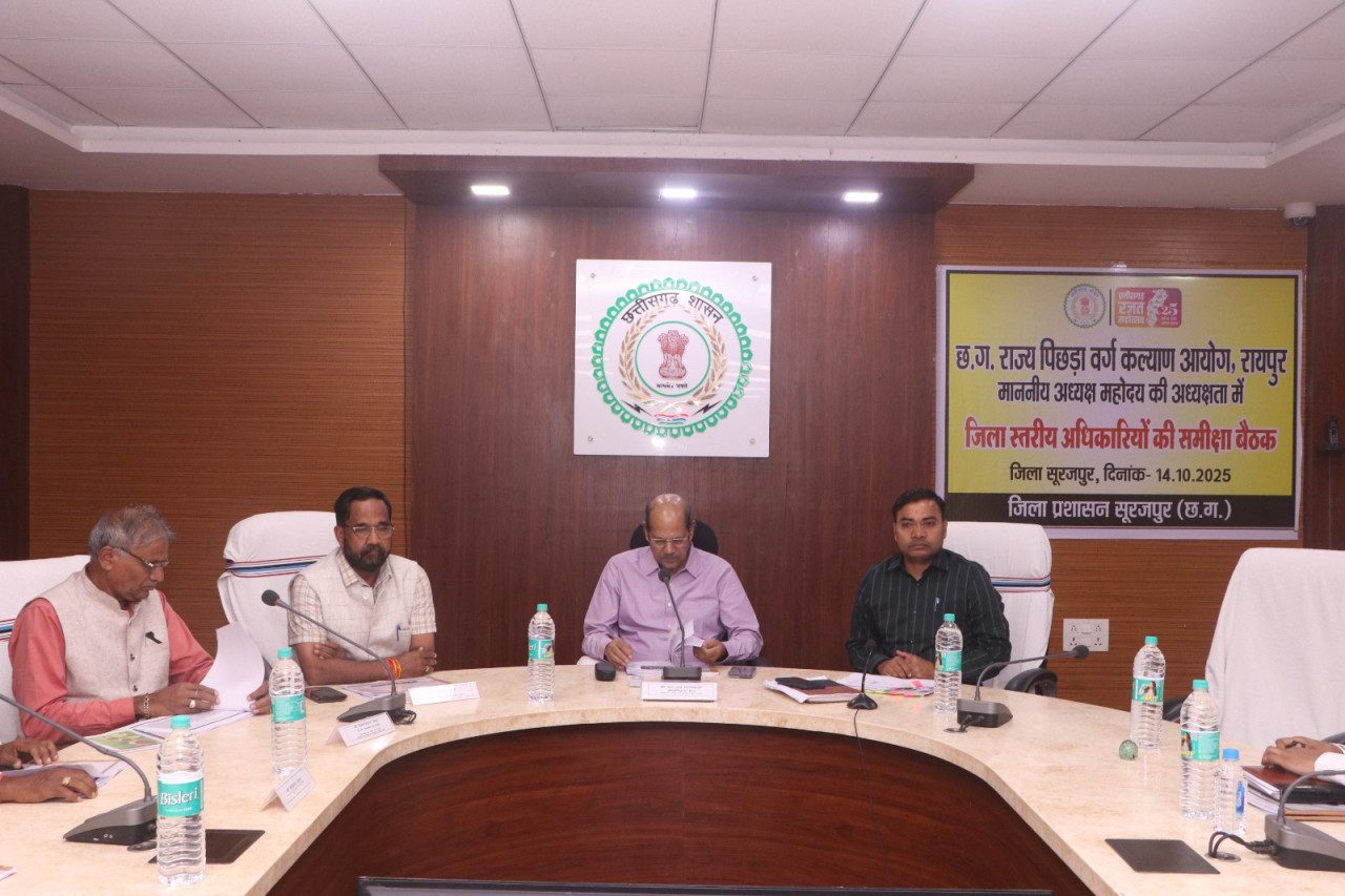 सूरजपुर आज छत्तीसगढ़ पिछड़ा वर्ग कल्याण आयोग, रायपुर के अध्यक्ष श्री आर.एस. विश्वकर्मा तथा सदस्यगण श्री यशवंत सिंह वर्मा, श्री बलदाऊ राम साहू, श्री हरिशंकर यादव एवं श्री कृष्णा गुप्ता के द्वारा कलेक्ट्रेट सभाकक्ष में जिले के विभागीय अधिकारियों की समीक्षा बैठक आयोजित की गई।