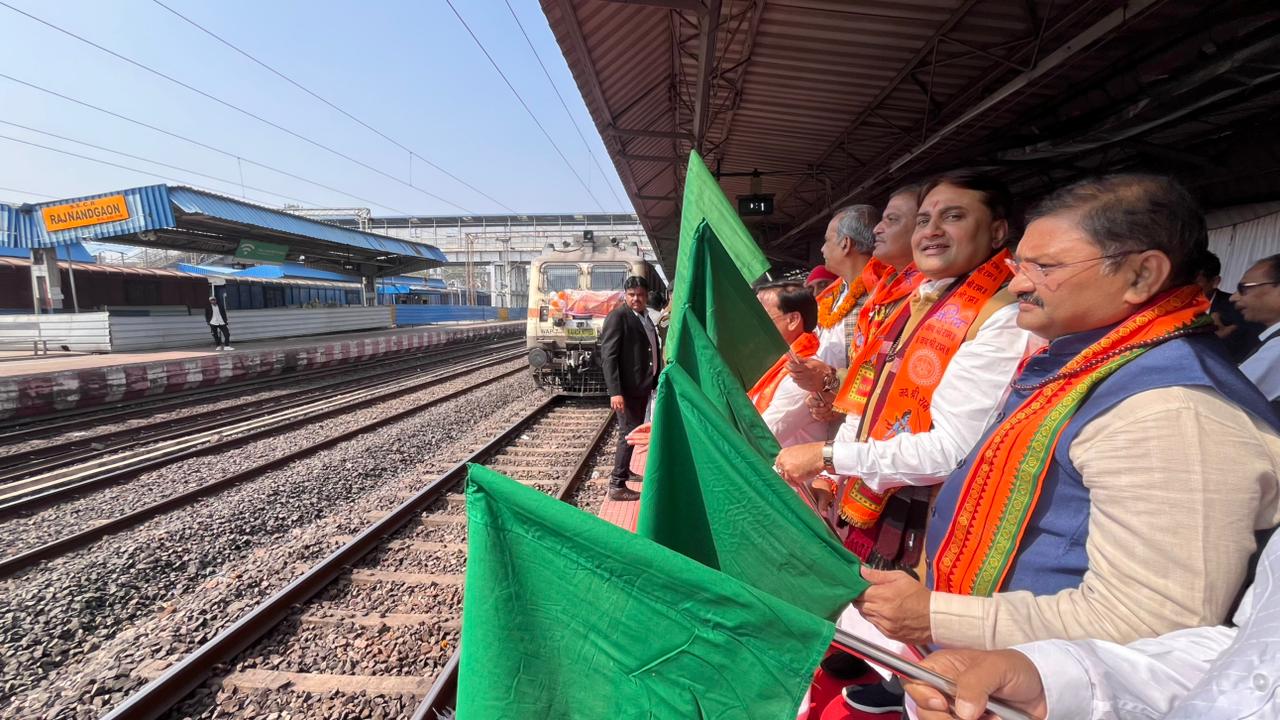 रायपुर रामलला दर्शन योजना के अंतर्गत आज भारत गौरव स्पेशल ट्रेन राजनांदगांव से अयोध्या धाम की ओर रवाना हुई। इस अवसर पर सांसद श्री संतोष पांडे, छत्तीसगढ़ टूरिज्म बोर्ड के अध्यक्ष श्री नीलू शर्मा और महापौर श्री मधुसूदन यादव ने हरी झंडी दिखाकर ट्रेन को रवाना किया।