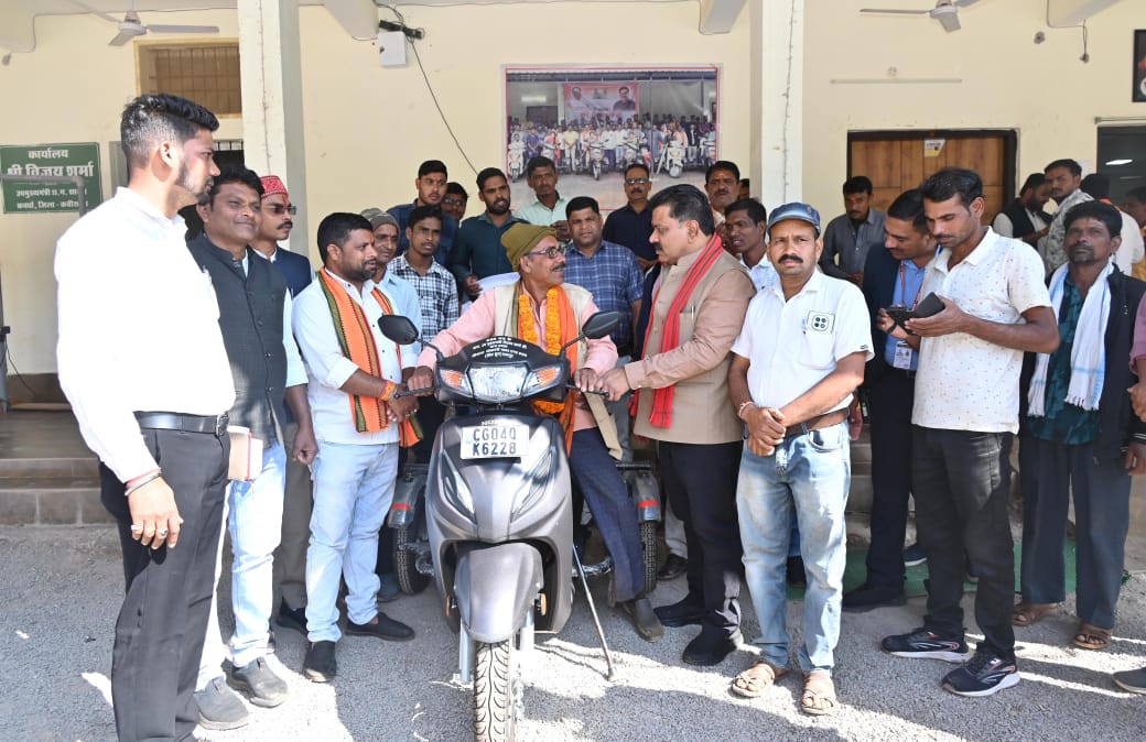 रायपुर उपमुख्यमंत्री एवं कवर्धा विधायक विजय शर्मा की संवेदनशील पहल से एक बार फिर दिव्यांगजन को आत्मनिर्भरता की राह मिली है। विकासखंड बोड़ला के ग्राम सरेखा निवासी एक पैर से दिव्यांग श्री नेमीसिंह साहू को आज विधायक कार्यालय कवर्धा में पेट्रोल चलित स्कूटी प्रदान की गई।