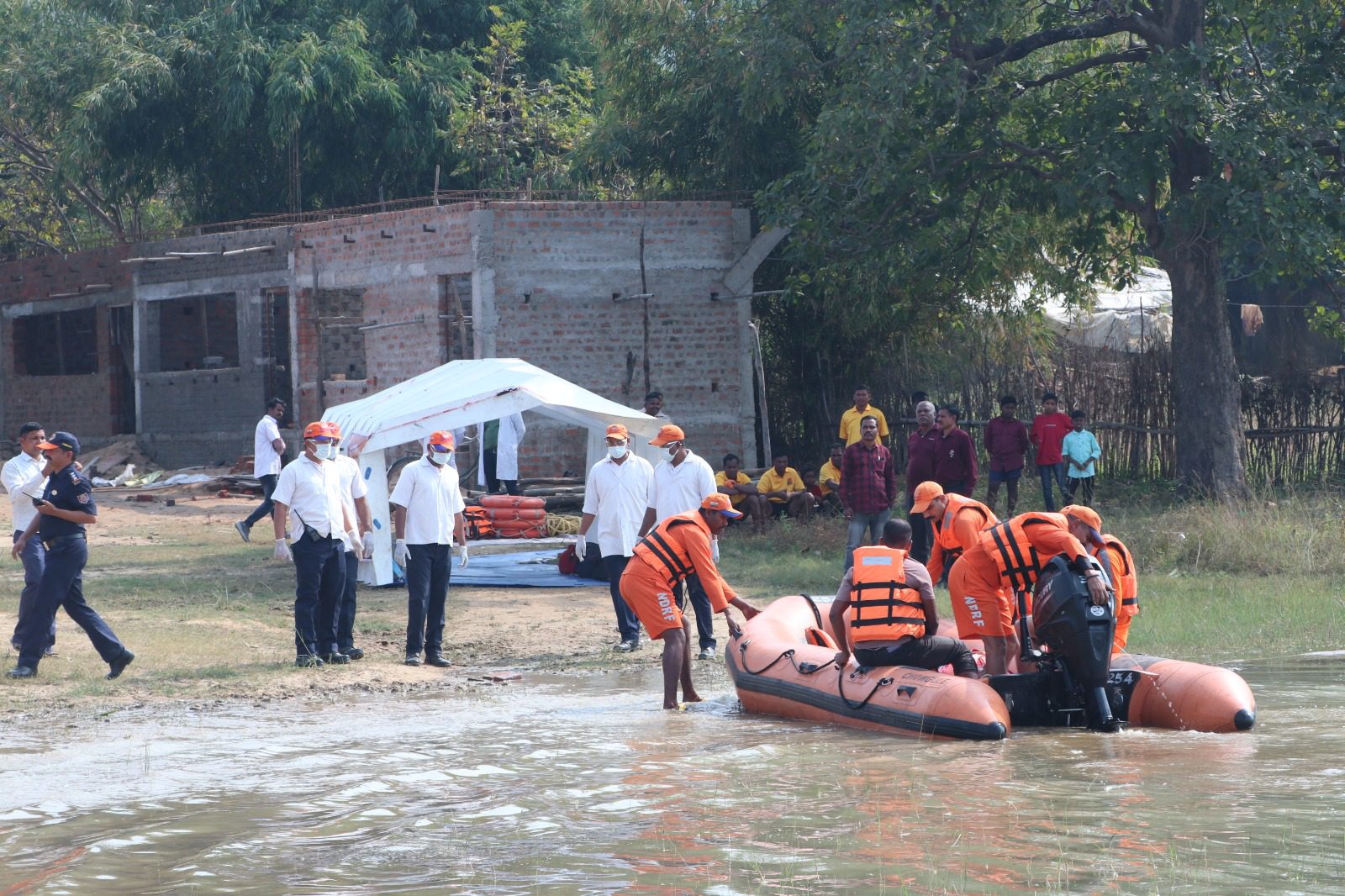 कांकेर । बारिश के दिनों में बाढ़ की स्थिति निर्मित होने पर बाढ़ में फंसे लोगों को बचाने के उपायों की जानकारी देने के लिए एन.डी.आर.एफ.कटक की 27 सदस्यीय टीम द्वारा आज जिले के कलेक्टर निलेश कुमार महादेव क्षीरसागर की उपस्थिति में खमढोड़गी जलाशय में माकड्रिल किया गया। टीम लीडर हीरा सिंह के नेतृत्व में एन.डी.आर.एफ.और होमगार्ड के जवानों द्वारा बाढ़ के कारण टापू में फंसे लोगों को बचाने, बचाव टीम का बोट पलटने से डूबते हुए व्यक्ति को बचाने, डूबते हुए व्यक्ति को बचाने और उसका त्वरित उपचार का जीवंत अभ्यास के साथ ही स्थानीय संसाधनों जैसे रस्सी,सूखा नारियल, पानी का जेरिकेन, पानी का बोतल, बांस इत्यादि के माध्यम से भी डूबते हुए व्यक्तियों को बचाने का माकड्रिल किया गया।