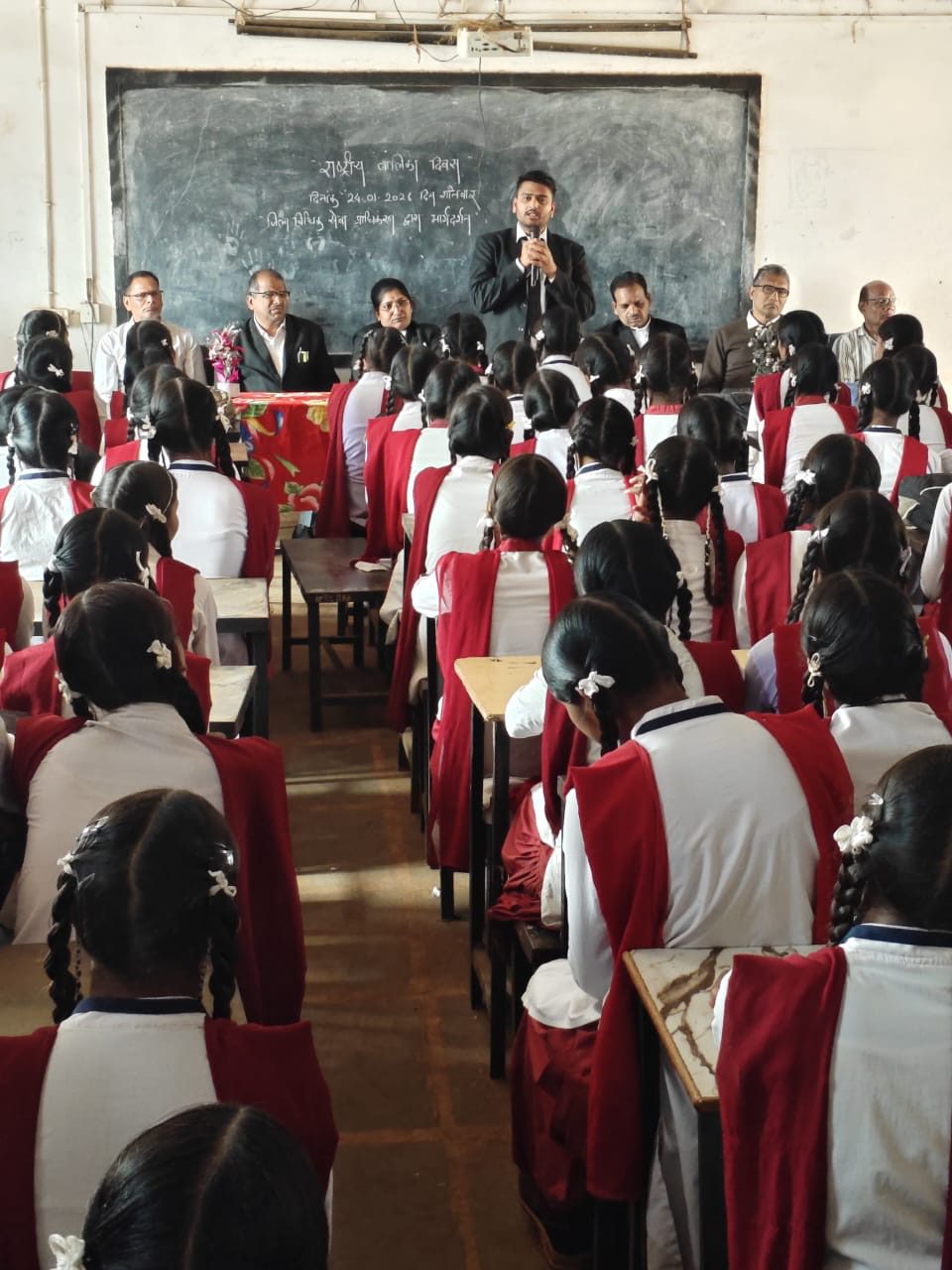 अधिवक्ता श्री देवेंद्र साहू ने बाल विवाह प्रतिषेध अधिनियम की जानकारी देते हुए बताया कि राष्ट्रीय बालिका दिवस क्यों मनाया जाता है तथा इसका सामाजिक महत्व क्या है। अधिवक्ता श्री सूरज मिश्रा ने बालिकाओं को बाल विवाह जैसी सामाजिक कुप्रथा का विरोध करने के लिए प्रेरित किया तथा आवश्यकता पड़ने पर जिला विधिक सेवा प्राधिकरण से संपर्क करने की जानकारी दी।
