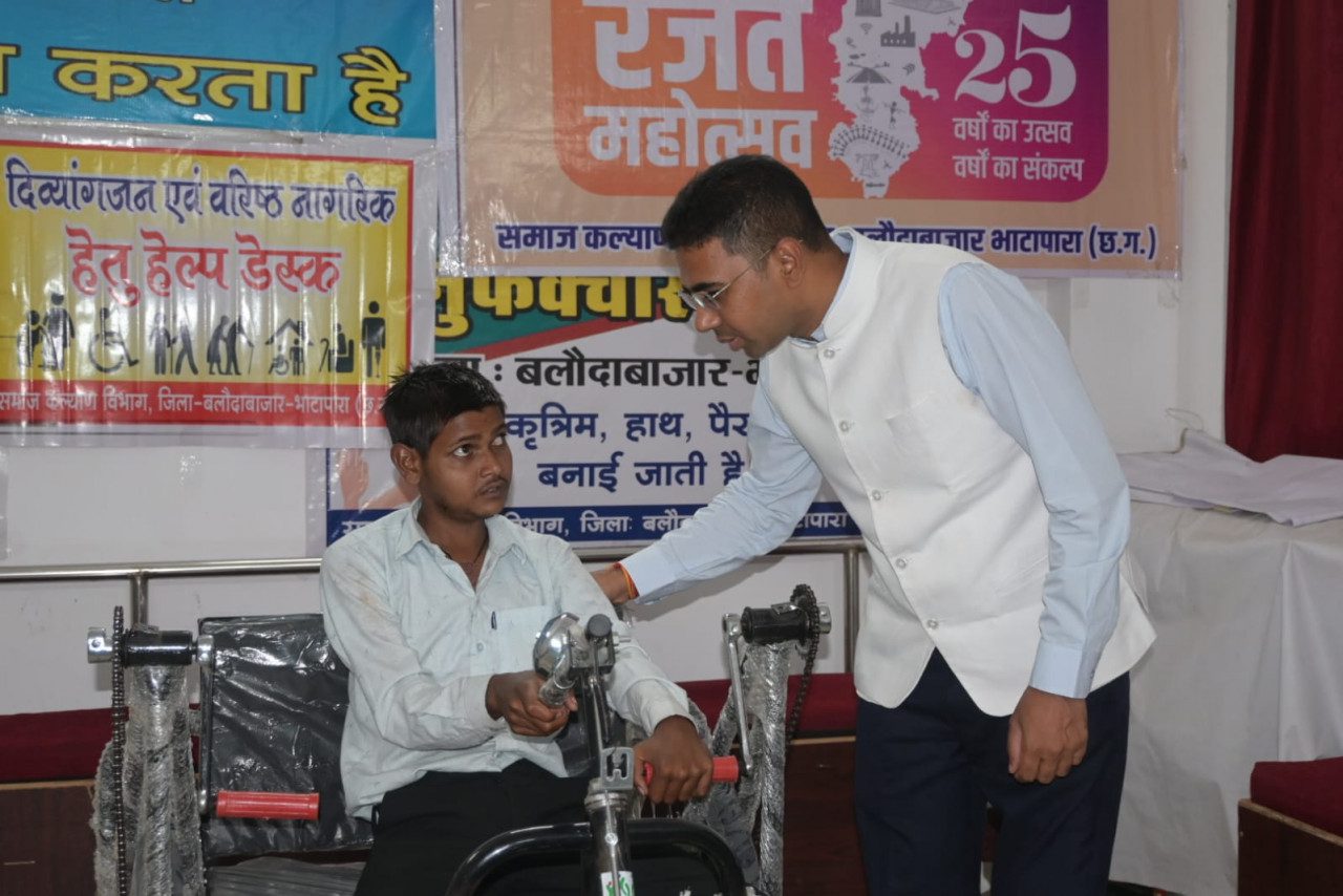 बलौदाबाजार-भाटापारा जिला प्रशासन द्वारा शासन की जनकल्याणकारी योजनाओं को अंतिम व्यक्ति तक पहुँचाने के संकल्प के साथ दिव्यांगजनों के सशक्तिकरण की दिशा में एक मानवीय पहल की गई है। इसी कड़ी में आज कलेक्टर कुलदीप शर्मा ने समाज कल्याण विभाग के द्वारा दिव्यांग श्यामसुंदर चंदेल को ट्राइसाइकिल प्रदान की।