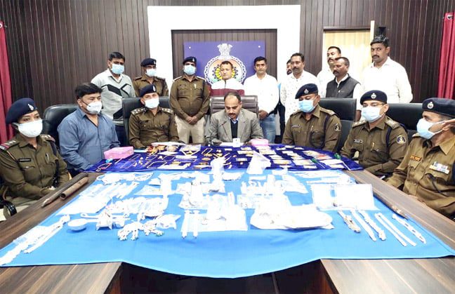 भिलाई । सुनियोजित तरीके से सूने मकानों में नकबजनी करने वाले गिरोह का पर्दाफॉश शहरी क्षे़त्र के लगभग 41 चोरियों का खुलासा पुलिस महानिरीक्षक, दुर्ग रेंज एवं वरिष्ठ पुलिस अधीक्षक दुर्ग के निर्देशन में की गई कार्यवाही भारी मात्रा में सोने एवं चांदी के जेवरात बरामद आरोपियों से लगभग 01 किलो 300 ग्राम सोना व 07 किलो चांदी के जेवरात बरामद। गिरोह के 03 नकबजन सहित चोरी का सोना व चांदी खरीदने वाले 03 आरोपी गिरफ्तार। पिछले 03-04 वर्षो से शहरी क्षेत्र में गिरोह द्वारा दिया जा रहा था चोरी की घटना को अंजाम। सूने मकानों की सायकल से करते थे रेकी।घटना कारित करने के तुरंत बाद पुनः चोरी करने के लिए करते थे प्लान। गिरफ्तार आरोपीगणों का है पूर्व अपराधिक रिकार्ड। लगभग 77 लाख के मशरूका बरामद हुआ।