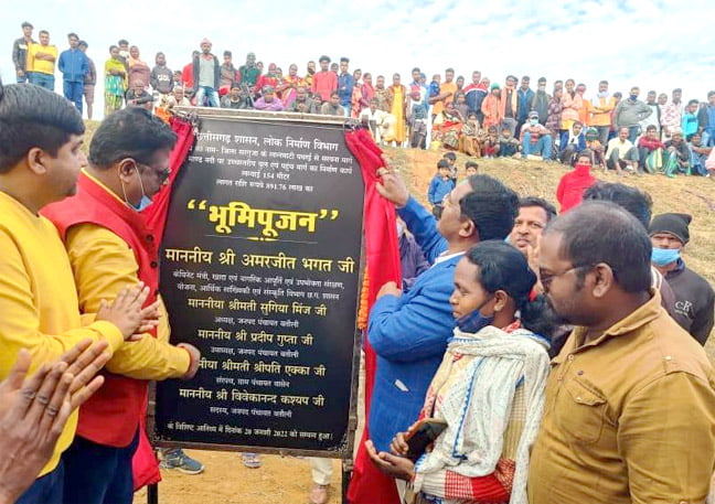 रायपुर । खाद्य, नागरिक आपूर्ति एवं उपभोक्ता संरक्षण मंत्री श्री अमरजीत भगत ने गुरूवार को लालमाटी पथरई से सरमना मार्ग में माण्ड नदी पर 8 करोड़ 91 लाख 76 हजार रुपए की लागत से बनने वाले उच्च स्तरीय पुल एवं पहुंच मार्ग निर्माण कार्य का भूमिपूजन किया। इस उच्च स्तरीय पुल की लंबाई 154 मीटर होगी।