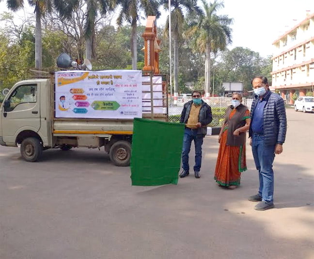 भिलाई। सेल-भिलाई इस्पात संयंत्र के जनस्वास्थ्य विभाग द्वारा कोविड व ओमिक्रोन वेरियंट से बचाव व सावधानी हेतु जागरूकता रथ को हरी झंडी दिखा कर रवाना किया। बीएसपी का यह जागरूकता रथ टाउनशिप के विभिन्न क्षेत्रों में घूम घूम कर लाउडस्पीकर के माध्यम से कोरोना से बचाव हेतु लोगों को जागरूक करेगा।