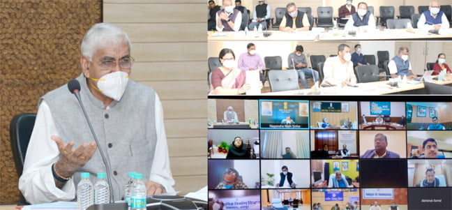 रायपुर । पंचायत एवं ग्रामीण विकास मंत्री श्री टी.एस. सिंहदेव आज वरिष्ठ विभागीय अधिकारियों के साथ केन्द्रीय ग्रामीण विकास मंत्रालय द्वारा वीडियो कॉन्फ्रेंस से आयोजित बैठक में शामिल हुए। केन्द्रीय पंचायतीराज एवं ग्रामीण विकास मंत्री श्री गिरिराज सिंह की अध्यक्षता में आयोजित ऑनलाइन बैठक में विभिन्न राज्यों में प्रधानमंत्री आवास योजना (ग्रामीण) और प्रधानमंत्री ग्राम सड़क योजना की प्रगति की समीक्षा की गई। केन्द्रीय ग्रामीण विकास राज्य मंत्री श्री फग्गन सिंह कुलस्ते और साध्वी निरंजन ज्योति भी बैठक में शामिल हुईं। राज्य शासन के पंचायत एवं ग्रामीण विकास विभाग की अपर मुख्य सचिव श्रीमती रेणु जी. पिल्लै, सचिव श्री प्रसन्ना आर., प्रधानमंत्री आवास योजना (ग्रामीण) के संचालक श्री मोहम्मद कैसर अब्दुलहक और छत्तीसगढ़ ग्रामीण सड़क विकास अभिकरण के मुख्य कार्यपालन अधिकारी श्री आलोक कटियार भी वीडियो कॉन्फ्रेंस में मौजूद थे।