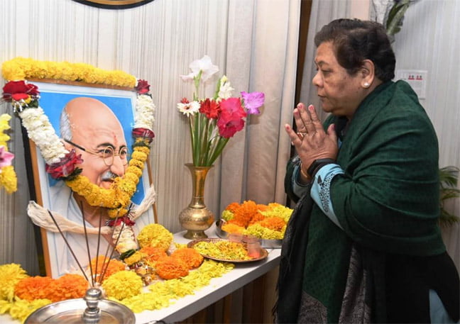रायपुर । राज्यपाल सुश्री अनुसुईया उइके ने आज यहां राजभवन में राष्ट्रपिता महात्मा गांधी की पुण्यतिथि के अवसर पर उनके छायाचित्र पर पुष्पांजलि अर्पित कर श्रद्धांजलि दी। राज्यपाल ने कहा है कि महात्मा गांधी ने मातृभूमि की सेवा के लिए सर्वस्व अर्पित कर दिया।