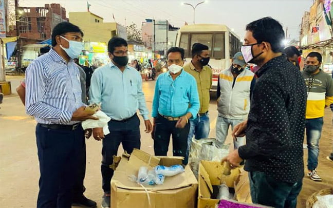 भिलाई। नगर पालिक निगम भिलाई के आयुक्त प्रकाश सर्वे के नेतृत्व में शहर के व्यस्ततम इलाके सुपेला लक्ष्मी मार्केट में पॉलिथीन एवं सिंगल यूज प्लास्टिक पर अचानक रात को छापामार कार्रवाई की गई। अचानक हुई कार्रवाई में दुकानदारों को पॉलीथिन छुपाने का अवसर नहीं मिला और कई किलो पॉलीथिन कैरी बैग जब्ती किया गया इसके साथ ही दुकानदारों से जुर्माना वसूल किया गया। रात 7:00 बजे के तकरीबन नगर पालिक निगम भिलाई की गठित टीम जो कि सिंगल यूज प्लास्टिक, पॉलीथिन, कैरी बैग पर लगातार कार्रवाई कर रही है, सुपेला लक्ष्मी मार्केट पहुंची।