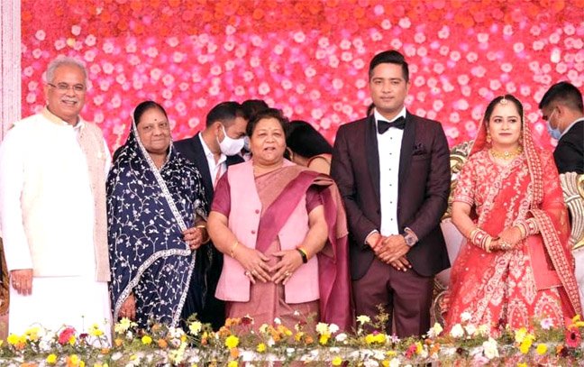उन्होंने नवदम्पत्ति को आशीष देकर उनके खुशहाल एवं मंगलमय जीवन की कामना की। समारोह में मुख्यमंत्री की धर्मपत्नी श्रीमती मुक्तेश्वरी बघेल भी उपस्थित थीं।