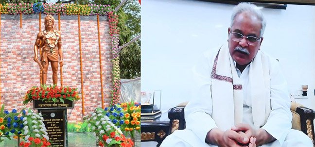 रायपुर । मुख्यमंत्री भूपेश बघेल ने भूमकाल दिवस के एक दिन पहले आज अपने रायपुर निवास कार्यालय से नगर पालिका कांकेर के घड़ी चौक में स्थापित अमर शहीद गुण्डाधुर की प्रतिमा का वर्चुअल लोकार्पण किया। मुख्यमंत्री श्री भूपेश बघेल ने अमर शहीद गुण्डाधुर को नमन करते हुए कहा कि उन्होंने बस्तर में भूमकाल आंदोलन का नेतृत्व किया। भूमकाल आंदोलन सन् 1909 में प्रारंभ हुआ था। यह आंदोलन आदिवासियों के स्वाभिमान, आदिवासियों के जल, जंगल और जमीन तथा आदिवासियों की स्वतंत्रता की लड़ाई थी। उन्होंने सीमित संसाधनों के बावजूद अंग्रेजों से लोहा लिया। वो अंग्रेजों के सामने झुके नहीं। उन्होंने आदिवासी समाज को जोड़ा।