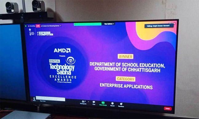 दोनों एप्प को शिक्षा विभाग के लिए विकसित करने का कार्य एनआईसी के वरिष्ठ तकनीकी संचालक श्री सोम शेखर के नेतृत्व में उनकी टीम द्वारा किया गया है। अवार्ड वितरण के अवसर पर छत्तीसगढ़ एनआईसी के राज्य सूचना अधिकारी डॉ. ए. के. होता, एन.आई.सी के वरिष्ठ तकनीकी निदेशक श्री. ए.के. सोमशेखर, सहायक संचालक समग्र शिक्षा डॉ. एम. सुधीश एवं वैज्ञानिक-‘बी’, एन.आई.सी श्रीमती ललिता वर्मा उपस्थित थीं।