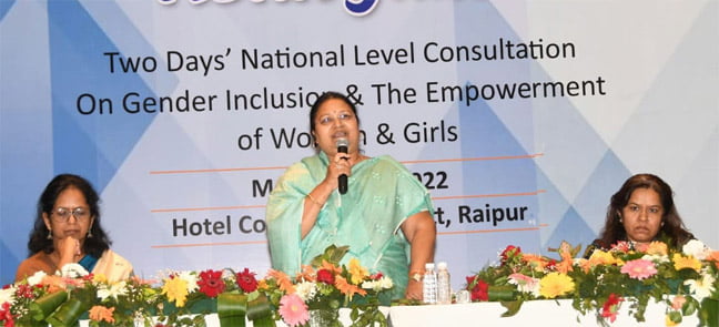 रायपुर । लैंगिक समानता एवं महिला सशक्तिकरण विषय पर आयोजित राष्ट्रीय सेमिनार के समापन समारोह में महिला एवं बाल विकास मंत्री श्रीमती अनिला भेंड़िया शामिल हुई। कार्यशाला में देश-प्रदेश आये विषय विशेषज्ञों द्वारा महिलाओं एवं युवतियों के सशक्तिकरण के प्रयासों से सामाजिक संस्थाओं और लोगों को जोड़ने और इनमें मीडिया की सार्थक भूमिका पर चर्चा की गई।