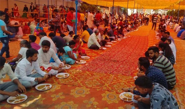 विधायक देवेन्द्र यादव भक्तों को भोजन परोसते हुएसैकड़ों सेवादारों ने दी अपनी सेवा