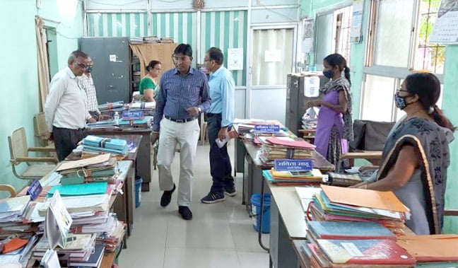 भिलाई । कार्यालय में कर्मचारियों की उपस्थिति एवं विभागीय कार्य में कसावट लाने के लिए निगम आयुक्त प्रकाश सर्वे ने विभागों का औचक निरीक्षण किया। दिन शनिवार एवं रविवार को अवकाश होने एवं कार्यालय दिवस में समय प्रातः 10:00 बजे से सायं 5:30 बजे तक के समय के अधिसूचना जारी होने के साथ ही आयुक्त सक्रियता से कभी भी औचक निरीक्षण कर रहे हैं। इसी तारतम्य में आज आयुक्त ने शाम 05 बजे मुख्य कार्यालय के विभिन्न विभागों का निरीक्षण करना प्रारंभ किया। कुछ विभागों में उनके महत्वपूर्ण कार्यों को लेकर उनके विभाग में ही बैठकर समीक्षा की।