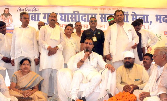 रायपुर। लोक स्वास्थ्य यांत्रिकी एवं ग्रामोद्योग मंत्री गुरु रूद्रकुमार जांजगीर-चांपा जिले के पामगढ़ विकासखंड अंतर्गत ग्राम भदरा में तीन दिवसीय सतगवां सतनाम मेले का शुभारंभ किया। इस अवसर पर गुरु रूद्रकुमार ने जैतखाम के नीचे बने गुरु गद्दी की पूजा-अर्चना कर सत समाज के लोगों को बधाई और शुभकामनाएं दी। अपने उद्बोधन में गुरु रूद्रकुमार ने पहली बार भदरा आगमन पर यहां के लोगों द्वारा आत्मीय स्वागत के लिए अपनी प्रसन्नता जाहिर करते हुए ग्रामीणों को धन्यवाद दिया। उन्होंने भदरा धाम में मूलभूत सुविधाओं एवं भदरा धाम के विकास के लिए डीएमएफ मद से 20 लाख रुपए की घोषणा की।