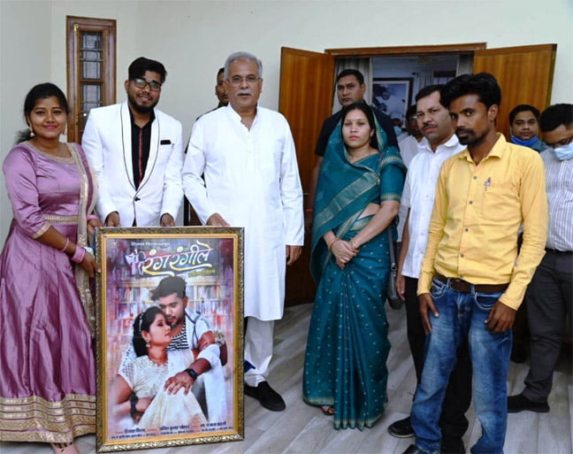 रियांश फिल्म्स के बैनर तले बन रही छत्तीसगढ़ी फिल्म के अभिनेता श्री खगेश जांगड़े ने मुख्यमंत्री को बताया कि रंगरंगीले फिल्म 1 जुलाई को रिलीज की जाएगी। इस अवसर पर सारंगढ़ विधायक श्रीमती उत्तरी गणपत जांगड़े, सुश्री मुस्कान साहू, श्री गणपत जांगड़े सहित अन्य लोग उपस्थित थे।