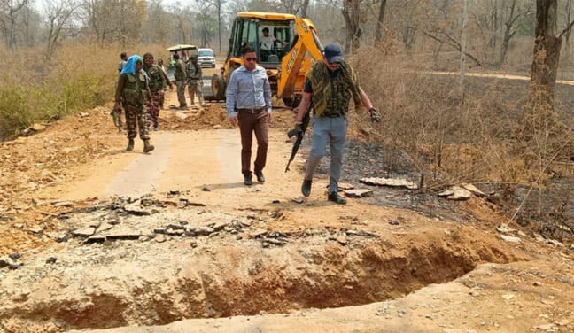 नक्सलियों ने 14 जगह से काटी सड़क, जवानों ने 2 घंटे में सड़क को पाटा, किया आवागमन बहाल