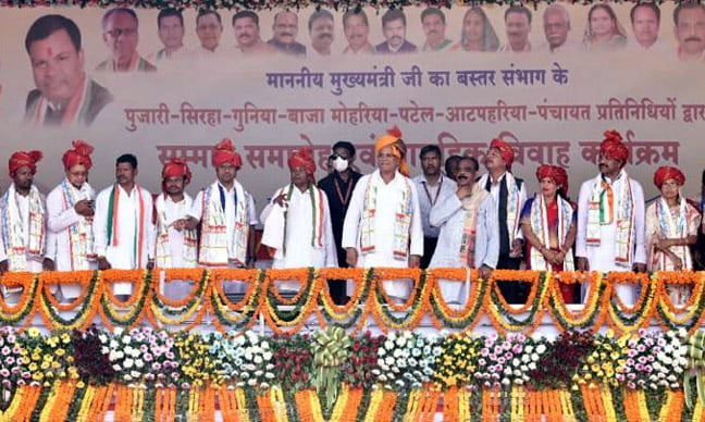 कार्यक्रम में मुख्यमंत्री श्री बघेल ने लगभग 104 करोड़ रुपए के 31 विकास कार्यों का लोकार्पण और भूमिपूजन किया। साथ ही बस्तर और बकावंड विकासखण्ड के 151 जोड़ों को मुख्यमंत्री कन्या विवाह योजना के तहत नव दाम्पत्य जीवन में प्रवेश करने पर आशीर्वाद दिया। कार्यक्रम में नगर पंचायत बस्तर के 11 हितग्राहियों को व्यक्तिगत वन अधिकार पत्र प्रदान किया। इस अवसर पर उद्योग मंत्री श्री कवासी लखमा, सांसद श्री दीपक बैज, बस्तर विकास प्राधिकरण के अध्यक्ष श्री लखेश्वर बघेल, प्राधिकरण के उपाध्यक्ष श्री संतराम नेताम, श्री विक्रम मंडावी, संसदीय सचिव श्री रेखचंद जैन, हस्तशिल्प विकास बोर्ड के अध्यक्ष श्री चंदन कश्यप, ऊर्जा विकास बोर्ड के अध्यक्ष श्री मिथलेश स्वर्णकार, मछुआ कल्याण बोर्ड के अध्यक्ष श्री एमआर निषाद सहित जनप्रतिनिधिगण एवं बड़ी संख्या में सिरहा-गुनिया व ग्रामीण उपस्थित थे।