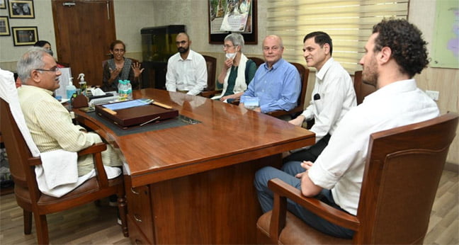रायपुर । मुख्यमंत्री भूपेश बघेल से आज यहां उनके निवास कार्यालय में पर्यावरण की बेहतरी और आदिवासियों की आजीविका के लिए कार्य करने वाली नीदरलैंड की वैश्विक संस्था कामनलैण्ड फाउण्डेशन के मुख्य कार्यपालन अधिकारी श्री विलियम फरवेर्डा के नेतृत्व में एक प्रतिनिधिमंडल ने सौजन्य मुलाकात की। कामनलैण्ड फाउण्डेशन ने पायलेट प्रोजेक्ट के रूप में छत्तीसगढ़ के कबीरधाम जिले के बोडला विकासखण्ड की बैगा बहुल दो ग्राम पंचायतों धोलबज्जा एवं शंभूपीपर का चयन किया है। यहां यह संस्था आदिवासी जन समुदाय के साथ उनके पारंपरिक ज्ञान, विभिन्न योजनाओं के अभिसरण और आधुनिक तकनीक का उपयोग कर पर्यावरण संरक्षण और आदिवासी समुदाय की आजीविका के साधनों के विकास के लिए कार्य कर रही है।
