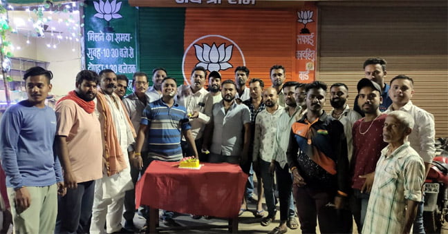 भिलाई । अम्बेडकर नगर युवा शक्ति ने रोशन नंदेश्वर के नेतृत्व में वार्ड 15 अंबेडकर नगर में भारतीय जनता पार्टी के 42 वा स्थापना दिवस पार्षद संतोष मौर्या के मुख्य अतिथि की उपस्थिति में केक काटकर एवं भारतीय जनता पार्टी के नारे लगा कर मनाया गया इस अवसर पर पार्षद संतोष मौर्या ने कहां की भारतीय जनता पार्टी ने मेहनत करके जनता के दिलों में एक अलग पहचान बनाई है ।