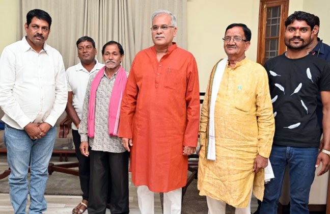 रायपुर । मुख्यमंत्री श्री भूपेश बघेल से आज यहां उनके निवास कार्यालय में छत्तीसगढ़ मनवा कुर्मी क्षत्रिय समाज धरसींवा राज के राज प्रधान दशरथ वर्मा के नेतृत्व मे एक प्रतिनिधिमंडल ने सौजन्य मुलाकात की।