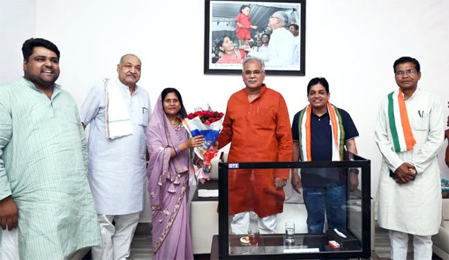खैरागढ़ विधानसभा उप निर्वाचन में मिली जीत पर मुख्यमंत्री ने कृषि मंत्री श्री रविन्द्र चौबे, नगरीय प्रशासन मंत्री डॉ. शिवकुमार डहरिया, विधायक श्री मोहन मरकाम, नवनिर्वाचित विधायक श्रीमती यशोदा वर्मा, छत्तीसगढ़ युवा आयोग के अध्यक्ष श्री जितेन्द्र मुदलियार, छत्तीसगढ़ खनिज निगम के अध्यक्ष श्री गिरीश देवांगन का मुंह मीठा कर उन्हें बधाई दी।