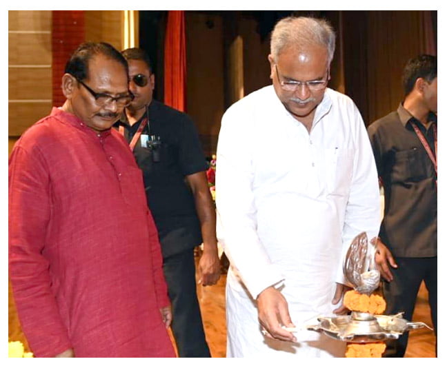 राष्ट्रीय जनजातीय साहित्य महोत्सव में मुख्यमंत्री श्री भूपेश बaघेल ने पद्मश्री लोकनायक हलधर नाग, साकीनेती रामचंद्रया और अर्जुन सिंह धुर्वे को शॉल और नारियल भेंटकर सम्मानित किया। मुख्यमंत्री ने प्रख्यात कवि पद्मश्री हलधर नाग को सम्मानित करते हुए आत्मीयता से गले लगाया। उन्होंने समारोह में देशभर से पहुंचे विख्यात साहित्यकारों, रचनाकारों, विश्वविद्यालयों के अध्येताओं, शोधर्थियों, विषय-विशेषज्ञों, नृतक दलों, चित्रकारों का स्वागत करते हुए कहा कि छत्तीसगढ़ में सरगुजा से बस्तर तक अनेक जनजातियां निवास करती हैं और उनकी भाषा-शैली भी अलग-अलग है। मुख्यमंत्री ने कहा कि छत्तीसगढ़ में पिछले तीन वर्षाें में नक्सली समस्या कम हुई है। अब छत्तीसगढ़ की चर्चा देश-दुनिया में यहां की समृद्ध संस्कृति के लिए हो रही है। हमारी सरकार ने जनजातियों की संस्कृति और सभ्यता के संरक्षण के लिए आदिवासी नृत्य महोत्सव का आयोजन कराया, जिसका स्वरूप अंतर्राष्ट्रीय हो गया। इससे देश-दुनिया के लोगों को छत्तीसगढ़ को जानने और समझने का मौका मिला। उन्होंने कहा कि चिंता का विषय है कि विश्व में बहुत सी जनजातियों का अस्तित्व समाप्त हो रहा है, जिससे उनकी संस्कृति विलुप्त हो रही है। मुख्यमंत्री श्री बघेल ने कहा कि छत्तीसगढ़ सरकार ने जनजातीय संस्कृति के संरक्षण के लिए स्कूली स्तर भी पहल की है। इसके लिए प्रदेश में 16 प्रकार की बोली में पाठ्य पुस्तक तैयार की गई है। अब प्रदेश में कक्षा पहली और दूसरी के बच्चे अपनी स्थानीय भाषा में पढ़ाई कर रहे हैं। जनजातीय भाषाओं, बोलियांे, कला-परंपराओं के संरक्षण और संवर्धन के लिए बस्तर में बादल अकादमी की स्थापना की गई है। इसी तरह की अकादमी अन्य जनजातीय बहुलता वाले जिलों में भी स्थापित की जा रही है। उन्होंने कहा कि साहित्य, नृत्य, चित्रकारी का प्रदर्शन निश्चित रूप से सभी समाज को जोड़ने में सेतु का कार्य करता है।