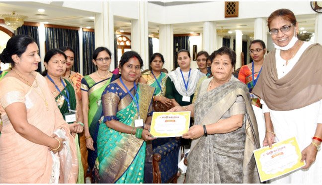 उल्लेखनीय है कि सखी फाउण्डेशन द्वारा महिलाओं को स्वरोजगार व आजीविका के लिए प्रशिक्षण देने का कार्य किया जा रहा है। साथ ही फाउण्डेशन, कमजोर वर्ग के बच्चों को शिक्षित करने का भी कार्य कर रही है। इस अवसर पर राज्यपाल सुश्री उइके ने प्रशिक्षण प्राप्त कर चुकी महिलाओं को केंद्र और राज्य सरकार द्वारा संचालित योजनाओं के बारे में जानकारी देते हुए कहा कि अगर आपको जीवन में कुछ करना है तो दृढ़ इच्छा शक्ति के बगैर वह संभव नहीं है। इसलिए आप सभी मजबूत इरादों के साथ अपने कार्यों में निरंतर आगे बढ़ते रहें। साथ ही उन्होंने महिलाओं से कहा कि वे अन्य महिलाओं को भी रोजगार के अवसरों तथा ऐसे प्रशिक्षणों से अवगत कराएं ताकि वे भी आगे आकर इसका लाभ ले सकें।