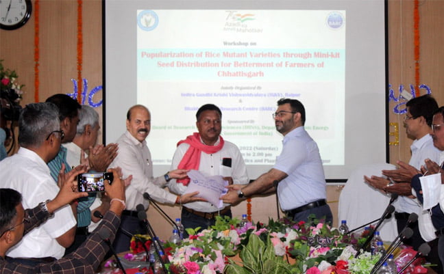 समारोह की अध्यक्षता इंदिरा गांधी कृषि विश्वविद्यालय के कुलपति डॉ. गिरीश चंदेल ने की। इस अवसर पर भाभा अटॉमिक रिसर्च सेन्टर के संचालक डॉ. तपन कुमार घंटी विशिष्ट अतिथि के रूप में मौजूद थे। इंदिरा गांधी कृषि विश्वविद्यालय के कुलपति डॉ. गिरीश चंदेल ने कहा कि छत्तीसगढ़ के विभिन्न हिस्सों में धान की हजारों परंपरागत किस्में पाई जाती है जो अपनी सुगंध, औषधीय गुणों तथा अन्य विशिष्ट गुणों के लिए मशहूर हैं। इंदिरा गांधी कृषि विश्वविद्यालय द्वारा धान की ऐसी 23 हजार 250 परंपरागत किस्मों के जनन द्रव्य का संग्रहण किया गया है। धान की परंपरागत सुगंधित किस्मों की दीर्घ अवधि, अधिक ऊंचाई तथा कम उपज की वजह से धीरे-धीरे किसानों ने इनकी खेती करना कम कर दिया है।