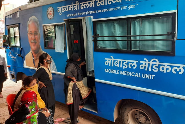 रायपुर । छत्तीसगढ़ के शहरी क्षेत्रों में मुख्यमंत्री शहरी स्लम स्वास्थ्य योजना से स्लम क्षेत्र में रहने वाले जरूरतमंद लोगों का ईलाज मोबाइल मेडिकल यूनिट के जरिए किया जा रहा है। छोटी-छोटी बीमारी के लिए अपने काम धंधे बंद कर डाक्टरों से अपॉइंटमेंट लेना और कतार में लग कर इलाज कराने गरीबों की यह दिक्कत को ध्यान रखते हुए शुरू की गई मुख्यमंत्री शहरी स्लम स्वास्थ्य योजना अब अपने उद्देश्यों और लक्ष्यों को न सिर्फ पूरा कर रही है, बल्कि मुहल्ले में ही कैंप लगने से लोगों को इलाज कराने में सहूलियत हुई है। गरीब और जरूरतमंद व्यक्तियों को अब बीमार पड़ने पर इलाज के लिए भटकना नहीं पड़ता।