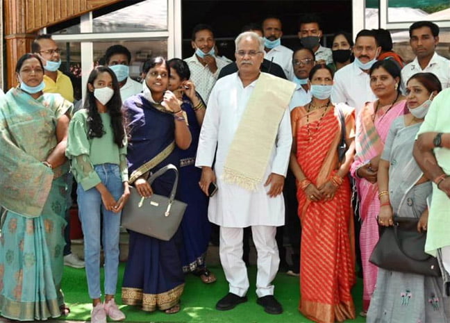 रायपुर । मुख्यमंत्री श्री भूपेश बघेल से सक्ती क्षेत्र के जनपद सदस्य एवं सरपंचों ने मुलाकात की। प्रतिनिधि मंडल ने उनके मानदेय बढ़ाने की घोषणा के परिप्रेक्ष्य में मुख्यमंत्री के प्रति आभार व्यक्त किया। इस अवसर पर कृषक उद्यमी श्री राजेश जायसवाल ने मुख्यमंत्री को पैकेजिंग किए हुए गोबर कंडे, पैराकुट्टी और गोमूत्र भेंट किया। श्री जायसवाल ने बताया कि इन उत्पादों को ऑनलाईन बाजार के माध्यम से पूरे देश में बेच रहे हैं और इस प्रति महीना करीब एक लाख रूपए अर्जित कर रहे हैं। मुख्यमंत्री ने श्री जायसवाल के कार्य की सराहना करते कहा कि प्रदेश के युवा श्री जायसवाल से प्रेरणा लें और आत्मनिर्भर बनें।