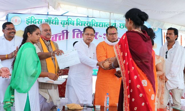 उत्तर बस्तर कांकेर  । अक्ति तिहार एवं माटी पूजन कार्यक्रम का आयोजन कृषि विज्ञान केन्द्र कांकेर में संसदीय सचिव एवं कांकेर विधायक श्री शिशुपाल शोरी की मुख्य अतिथि में आयोजित की गई। संसदीय सचिव श्री शोरी ने अक्ति तिहार एवं माटी पूजन कार्यक्रम में मुख्यमंत्री श्री भूपेश बघेल के संदेश का वाचन करते हुए कहा कि आज अक्षय तृतीया है, जिसे हम लोग अक्ती तिहार के रूप में मनाते हैं। अक्षय का अर्थ होता है, जिसका कभी क्षरण न हो। आज के दिन को बहुत ही शुभ माना जाता है। कोई भी काम की आज शुरुआत होती है, उसकी पूर्णता निश्चित मानी जाती है। शादी-ब्याह के लिए भी आज के दिन मुहूर्त देखने की जरूरत नहीं होती।