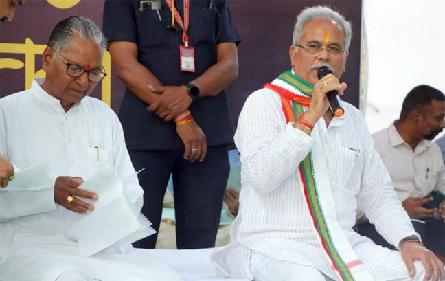 रायपुर । मुख्यमंत्री भूपेश बघेल के भेंट-मुलाकात अभियान के दौरान सूरजपुर जिले के प्रेमनगर विधानसभा क्षेत्र के रामनगर पहुंचे। यहां अमराई की छांव में उन्होंने ग्रामीणों से भेंट-मुलाकात की और उनसे शासकीय योजना एवं कार्यक्रमों के क्रियान्वयन के बारे में जानकारी ली। मुख्यमंत्री ने इस मौके पर प्रेमनगर विधानसभा क्षेत्र वासियों को 6 करोड़ 88 लाख रूपए के विकास एवं निर्माण कार्याें की सौगात देने के साथ ही स्थानीय जनप्रतिनिधियों के मांग पर कई महत्वपूर्ण घोषणाएं की। मुख्यमंत्री ने रामनगर के लोगों के आग्रह पर वहां नवीन सामुदायिक भवन का निर्माण कराए जाने, हाई स्कूल का हायर सेकेण्डरी के रूप में उन्नयन, सूरजपुर से रामनगर तक सड़क निर्माण की घोषणा की। मुख्यमंत्री ने सूरजपुर स्थित शासकीय कन्या महाविद्यालय के नवीन भवन का निर्माण और सूरजपुर में अत्याधुनिक जिम की स्थापना का भी ऐलान किया। ग्रामीणों की मांग पर राजस्व संबंधी कामकाज की सहूलियत के लिए माड़ी पौनी में नवीन तहसील कार्यालय की स्थापना की घोषणा की। इस दौरान प्रेमनगर के विधायक एवं सरगुजा विकास प्राधिकरण के अध्यक्ष श्री खेल साय सिंह, मुख्यमंत्री के सचिव डॉ. एस. भारतीदासन सहित अन्य जनप्रतिनिधि एवं हजारों की संख्या में ग्रामीणजन उपस्थित थे।