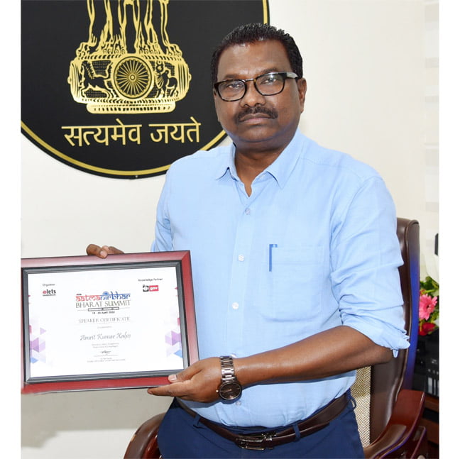 रायपुर । नई दिल्ली में आयोजित आत्मनिर्भर भारत सम्मेलन में श्रम विभाग को श्रमिकों के लिए अनेक कल्याणकारी योजनाएं संचालित करने के लिए आत्मनिर्भर भारत समिट में राजभवन के सचिव और श्रम विभाग के सचिव अमृत कुमार खलखो को प्रशस्ति पत्र प्रदान किया गया। श्री खलखो ने आत्मनिर्भर भारत सम्मेलन में छत्तीसगढ़ में किए जा रहे जनकल्याणकारी योजनाओं को लेकर अपनी बात रखी। साथ ही भविष्य में छत्तीसगढ़ की योजनाओं को लेकर भी अपने अनुभव साझा किए। आत्म निर्भर भारत सम्मेलन का आयोजन नई दिल्ली में हुआ, जिसमें भारत सरकार के सचिव यू.पी. सिंह, केंद्र सरकार एडिशनल सेक्रेटरी संजय जाजू, ज्वाइंट सेक्रेटरी बी. पुरूषार्थ, सी.ई.ओ. डॉ. अभिषेक सिंह, एन.आई.सी. की डायरेक्टर जनरल श्रीमती नीता वर्मा, इलेट्स समूह के सी.ई.ओ. डॉ रवि गुप्ता समेत देशभर के कई राज्यों से वरिष्ठ प्रशासनिक अधिकारी शामिल थे।