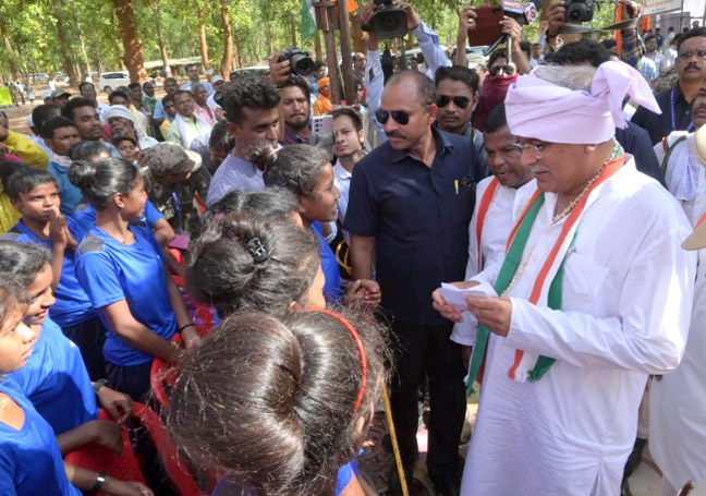रायपुर । नारायणपुर विधानसभा के ग्राम-मर्दापाल की भेंट-मुलाकात में आज मुख्यमंत्री ने हॉकी में नेशनल खेल चुकी शासकीय हायर सेकेंडरी स्कूल मर्दापाल की छात्राओं की मुराद पूरी की। मुख्यमंत्री ने इन बेटियों की टीम को हॉकी का कम्प्लीट किट भी भेंट किया।