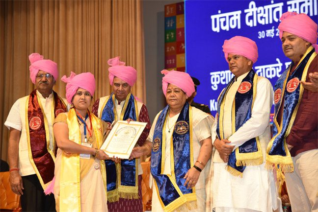 रायपुर । राज्यपाल एवं कुलाधिपति सुश्री अनुसुईया उइके आज कुशाभाऊ ठाकरे पत्रकारिता एवं जनसंचार विश्वविद्यालय, रायपुर के पंचम दीक्षांत समारोह में शामिल हुईं और स्नातक, स्नातकोत्तर विद्यार्थियों एवं पीएच.डी. धारकों को उपाधि प्रदान की। इस अवसर पर रविशंकर जी महाराज, वरिष्ठ पत्रकार एवं पूर्व महासचिव, ब्रॉडकास्ट एडिटर्स एसोसिएशन एन.के. सिंह, विधायक एवं पूर्व मंत्री श्री बृजमोहन अग्रवाल, रायपुर नगर निगम के महापौर एजाज ढेबर उपस्थित थे। दीक्षांत समारोह में वर्ष 2019, 2020 एवं 2021 के 345 स्नातक, 584 स्नातकोत्तर एवं दो शोधार्थियों को पीएच.डी. की डिग्री एवं प्रावीण्य सूची में प्रथम स्थान पर आने वाले विद्यार्थियों को गोल्ड मेडल प्रदान किया गया।