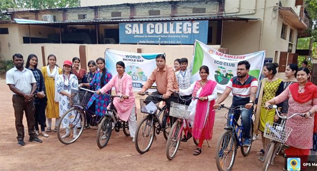 भिलाई । साईं कॉलेज सेक्टर 6 भिलाई में 3 जून 2022 विश्व साइकिल दिवस के उपलक्ष पर Eco Club एवं health and hygiene Club के द्वारा साइकिल रैली का आयोजन किया गया । विश्व साइकिल दिवस का दिन साइकिल को एक सरल किफायती एवं स्वच्छ और पर्यावरण के अनुकूल परिवहन के स्थाई साधन के उपयोग के लाभों के बारे में बताता है ।